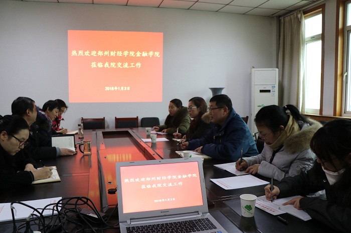 1月3日下午,郑州财经学院互联网金融学院书记杨贵仓一行5人来pa电子考察交流,党总支书记胡红林、副院长王培玲、保险教研室主任夏秀梅、投资学教研室主任邓瑜参加了座谈交流。