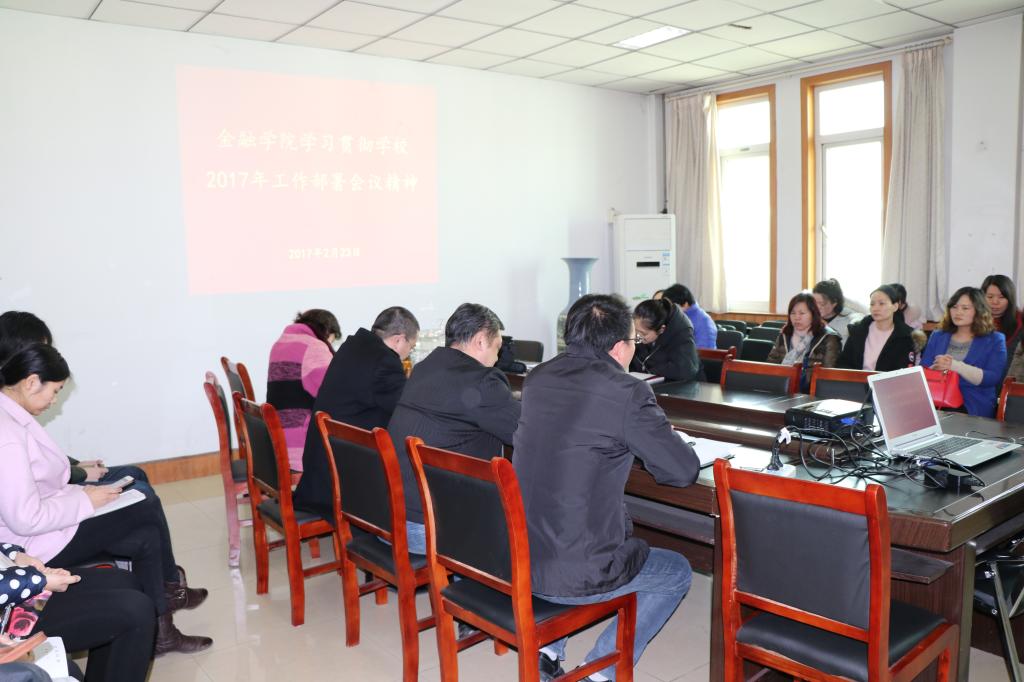 2月23日下午,金融学院在514会议室集中学习传达学校2017年新学期工作部署会议精神,全体教师参加了会议,会议由党总支书记胡红林主持。