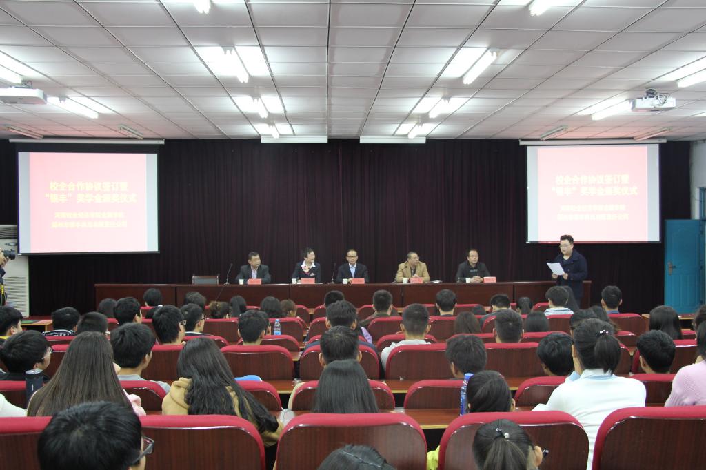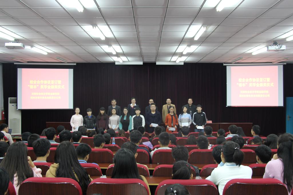 仪式上,院长黄良杰与郑州市银丰典当有限公司董事长冯俊敏签订了校企合作协议书。随后,总经理张建红宣读了获奖学生名单,董事长冯俊敏、总经理张建红、院长黄良杰、书记胡红林为获奖学生颁奖。获奖学生代表发表获奖感言。