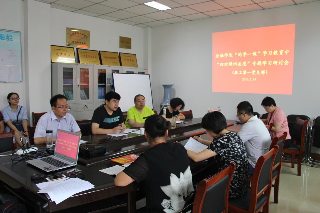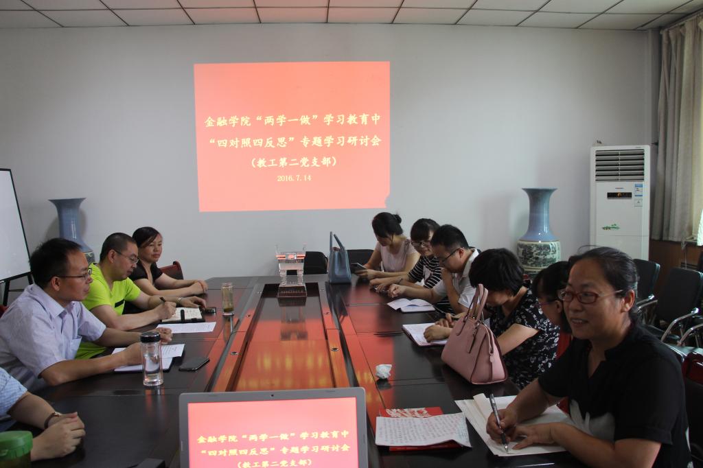 根据pa电子《关于在“两学一做”学习教育中围绕“四对照四反思”认真组织开展专题学习讨论的通知》要求,金融学院于7月14日上午在教学楼514会议室召开“四对照四反思”专题学习研讨会,全体党员老师参加了会议,会议由党总支书记席波主持。