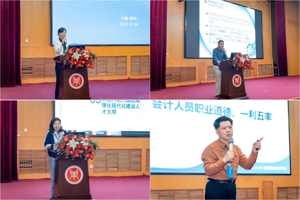 开幕式结束后,南京审计大学党委副书记、校长董必荣教授,上海财经大学会计学院院长靳庆鲁教授,中南财经政法大学政府会计研究所所长、财务部部长张琦教授,中央财经大学创新发展研究院常务副院长袁淳教授、新道科技股份有限公司河南分公司总经理郑胤先生分别作了《行政事业单位风险管理:外部治理与内部控制的有机融合—以公办大学为例》《新时代的公共领域会计研究》《数字化转型中的会计审计研究》《政策评估与分析的微观视角》《用中国商业创新实践,助力智慧会计新发展》主题报告。