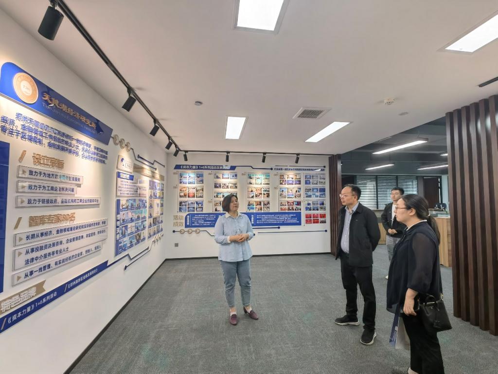 会后贾宪军一行走访参观了郑州高新区科技金融广场,了解其作为创投中心的功能定位、服务运营模式、以及郑州高新区构建的科创金融生态体系。贾宪军院长在参观天健湖经济研究所智库中心时,与有关工作人员进行了交流探讨。贾宪军表示,在当前新质生产力培育背景下,科技金融广场的功能价值会愈加突出。高校集聚了大量金融、投融资以及财务会计方向的专业人才,未来双方可以进一步加深合作,发挥高校优势,助力河南省高质量发展。