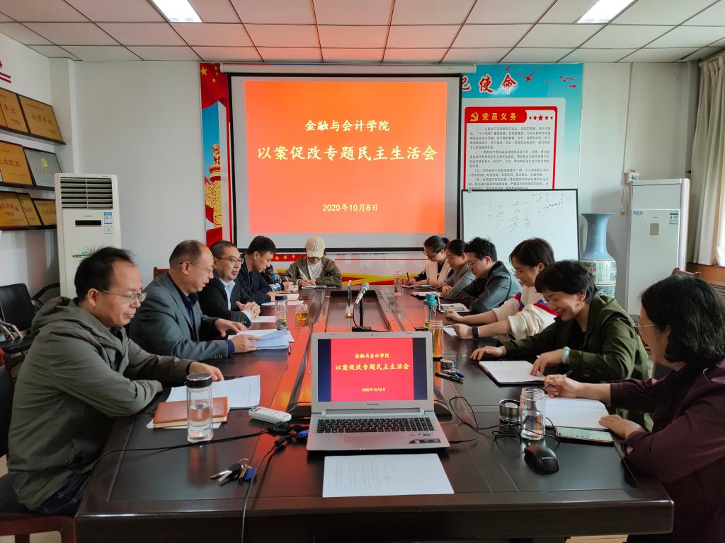 根据校党委《关于印发〈河南牧业经济学院2020年以案促改工作方案〉的通知》(校党[2020]68号)文件要求,10月8日下午,pa电子官方网站党委在教学楼514会议室召开以案促改专题民主生活会,学院处级领导干部参加会议,学院科级干部列席会议,会议由学院党委书记陈复昌主持。