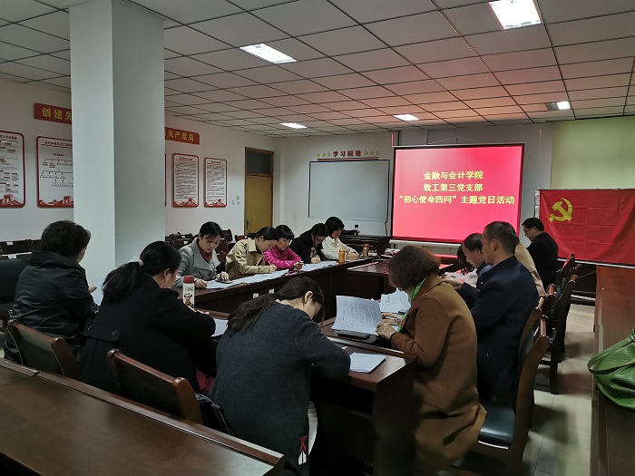 为认真贯彻习近平总书记视察调研河南时的重要讲话精神,深入推进“不忘初心、牢记使命”主题教育,引导广大党员在活动实施中认清使命、主动担当作为,11月21日下午,pa电子官方网站教工第三党支部开展了“初心使命四问”主题党日活动,全体党员同志参加了本次活动。