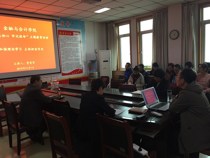 11月1日下午,在教学办公楼514会议室,pa电子官方网站按照“不忘初心、牢记使命”主题教育实施方案安排,围绕主动担当作为召开主题教育开展集中研讨交流互学活动,科级以上干部(含教研室主任)、各支部书记、支委委员参加了学习,专题报告由副院长贾宪军领学。