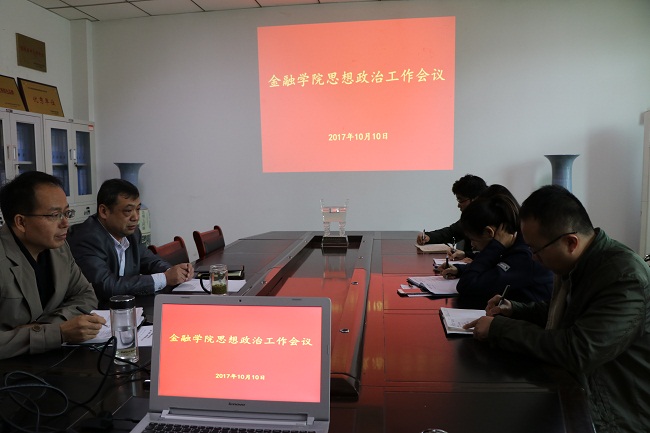 为进一步加强和改进新形势下金融学院思想政治工作,金融学院思想政治工作会议于10月10日在金融学院会议室召开。党总支书记胡红林、党总支副书记贾宪军、团总支书记李特及各位辅导员老师参加了此次会议。