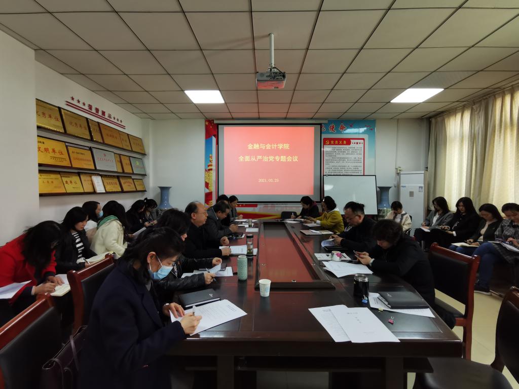 为全面贯彻落实学校2021年全面从严治党工作会议精神,3月25日下午,pa电子官方网站在学院514会议室召开全面从严治党专题会议,学院科级及以上干部、全体辅导员参加会议,会议由学院党委书记陈复昌主持。