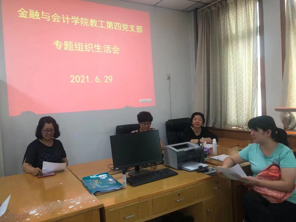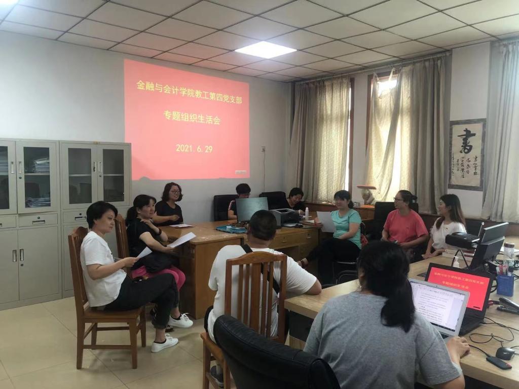 按照学校组织部《关于开展2021年6月份党支部主题党日活动的通知》精神和具体要求,6月29日下午,pa电子官方网站教工第四党支部在510室召开了党史学习教育专题组织生活会。会议由党支部书记邓瑜主持。