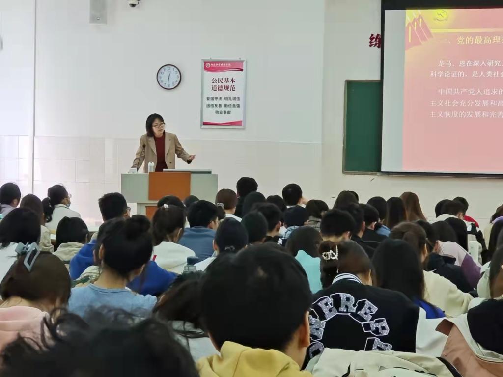 2021年10月22日中午,pa电子官方网站在E309开展了“2021年第二期入党积极分子培训班”培训课第五讲,党课主题为《党的最高理想和现阶段奋斗目标》,本次党课由pa电子官方网站学生第四支部书记刘慧莹老师主讲。