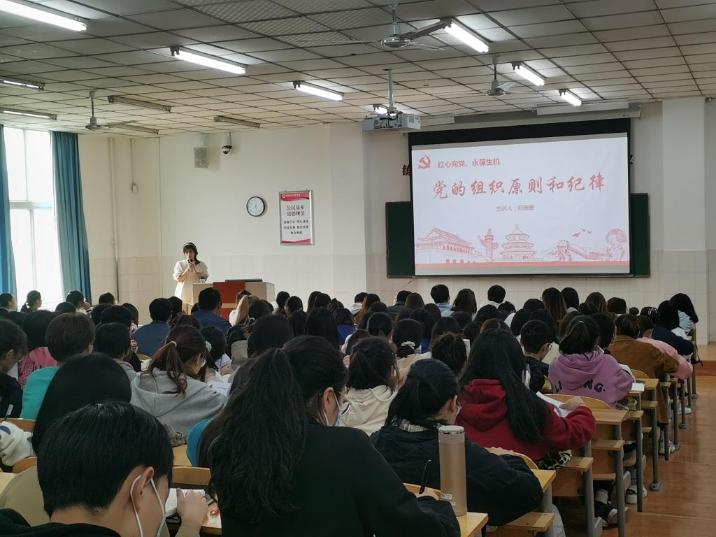2021年10月25日中午,pa电子官方网站在E309开展了“2021年第二期入党积极分子培训班”第七讲,党课主题为《党的组织原则、纪律》,本次党课由pa电子官方网站团委副书记邢珊珊老师主讲。