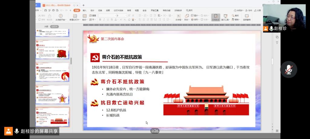 2022年3月30日中午,pa电子官方网站通过腾讯会议组织开展了线上“2022年第一期入党积极分子培训班“第六讲,党课主题为《同心同力学党史·同向同行践使命》,本次党课由pa电子官方网站组织员赵桂珍老师主讲。
