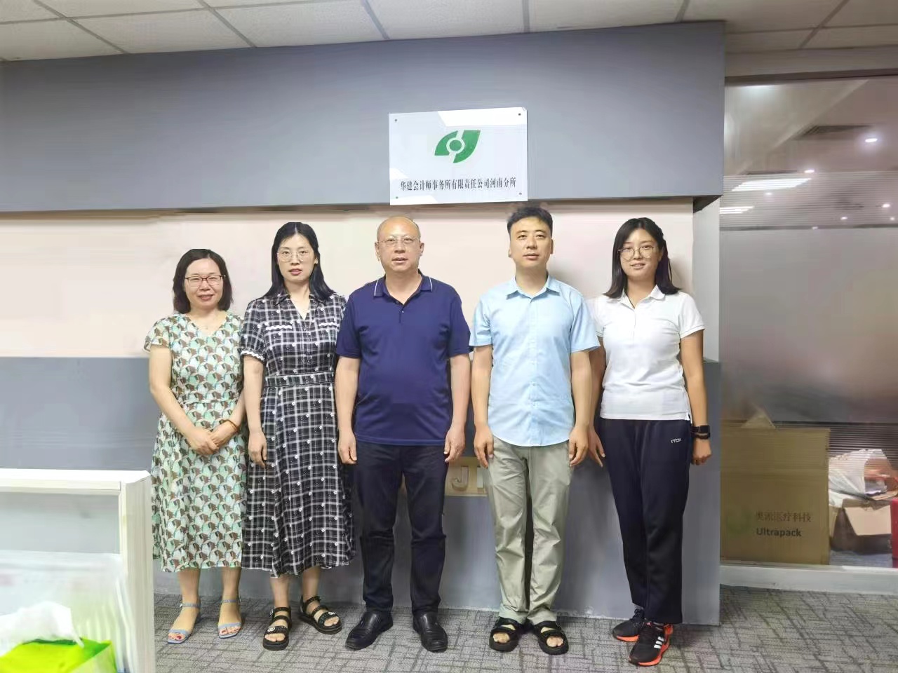 2022年7月27日下午,pa电子官方网站陈复昌书记、教工第三党支部部分党员教师一行5人赴华建会计师事务所河南分所开展“访企拓岗促就业,双百助企促发展”主题党日活动。