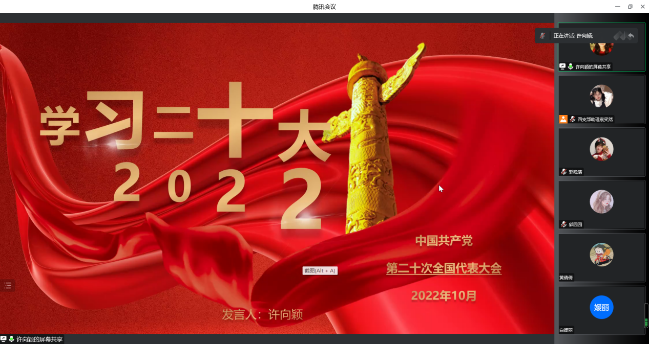 2022年10月25日晚,pa电子官方网站学生第四党支部通过线上会议方式开展十月份党日活动,本次会议的主要内容是“学习中国共产党第二十次全国代表大会精神”。支部书记刘慧莹老师以及支部全体学生党员参加本次会议。
