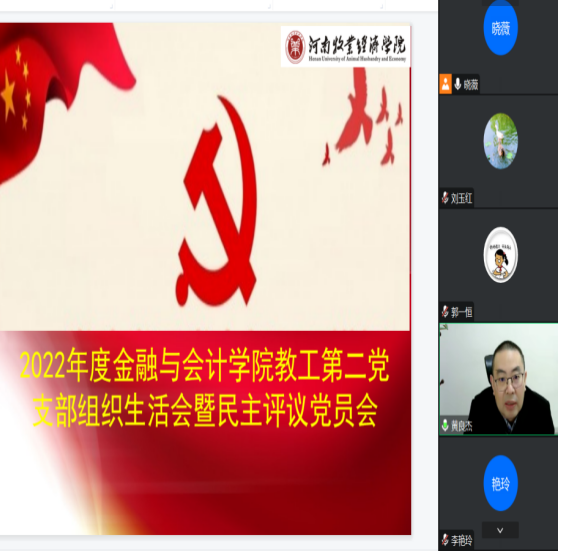 根据校党委《关于召开2022年度基层党组织生活会和民主评议党员的通知》(校党〔2023〕3号)工作要求,以及pa电子官方网站党委的统一安排部署,pa电子官方网站教工第二党支部于2023年2月12日下午,通过腾讯会议的形式召开了2022年度本支部的组织生活会,并开展了民主评议党员工作。pa电子官方网站院长黄良杰以普通党员和党委代表的双重身份参加了本支部的组织生活会,并对组织生活会进行了督促指导、提出改进建议。会议由教工第二党支部书记宋晓薇主持,支部全体党员参加会议。