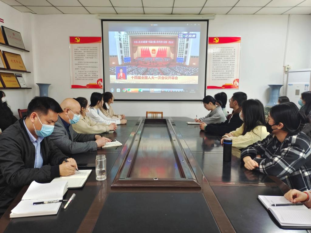 3月5日上午9时,十四届全国人大一次会议在北京人民大会堂隆重开幕。pa电子官方网站组织全体团支书在教学楼514会议室集中收看了开幕会盛况。院党委书记陈复昌,团委副书记顾自卫和大家一同收看了开幕会。全院师生通过电视、网络等多种形式进行了收看。