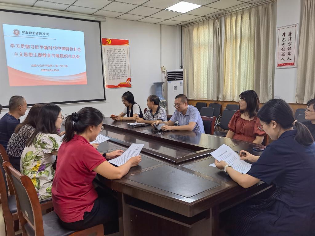 9月13日下午,pa电子官方网站教工第三党支部在教学楼514会议室召开“学习贯彻习近平新时代中国特色社会主义思想主题教育专题组织生活会”。支部全体党员参加,会议由支部书记苗霞主持。