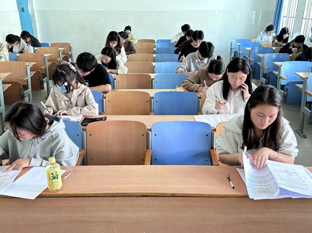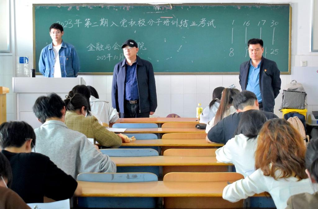 开考前,监考教师明确了考试形式及有关纪律。考试采取闭卷形式,此次考试分为选择题、填空题、问答题、判断题和论述题五大题型,考试内容丰富,重点突出,涉及党的二十大、党史、党章、党员发展细则等党的基本知识。整个考试的过程中,监考人员严肃监考,同学们严格遵守考场纪律,认真答题,诚信应考,考场秩序井然。院领导高度重视,院党委书记陈复昌、副书记汪晓伟到考场查看考场纪律和学生答题情况,并同监考老师进行交流。考试结束后,同学们有序交卷离场。