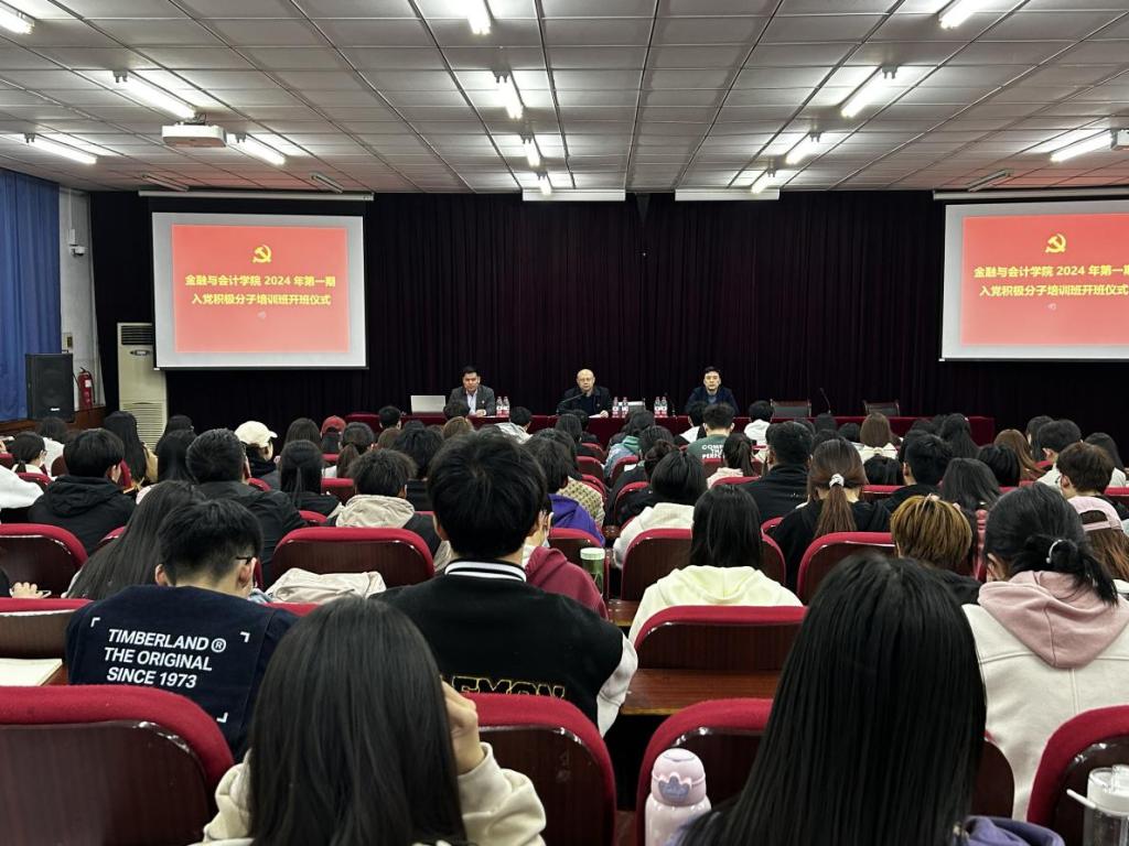开班仪式在庄严的国歌声中拉开帷幕。首先,党委副书记汪晓伟宣读了《pa电子官方网站2024年第一期入党积极分子培训班工作方案》,从培训目的、组织领导、培训内容及学时安排、总结考核等六个方面向大家做了介绍,并重点强调了党课培训的相关纪律要求。接着,陈复昌书记作动员讲话,他强调,入党积极分子是学生群体中的先进分子,是党员的后备军,大家要明确身份,认真学习,增强责任意识,坚定入党信念,在各个方面发挥先锋模范作用。同时,他希望大家通过培训进一步端正入党动机,筑牢理想信念之基,希望全体入党积极分子时刻以一名共产党员的标准严格要求自己,先做到从思想上入党、行动上入党,进而在组织上入党,争取早日以实际行动加入中国共产党。