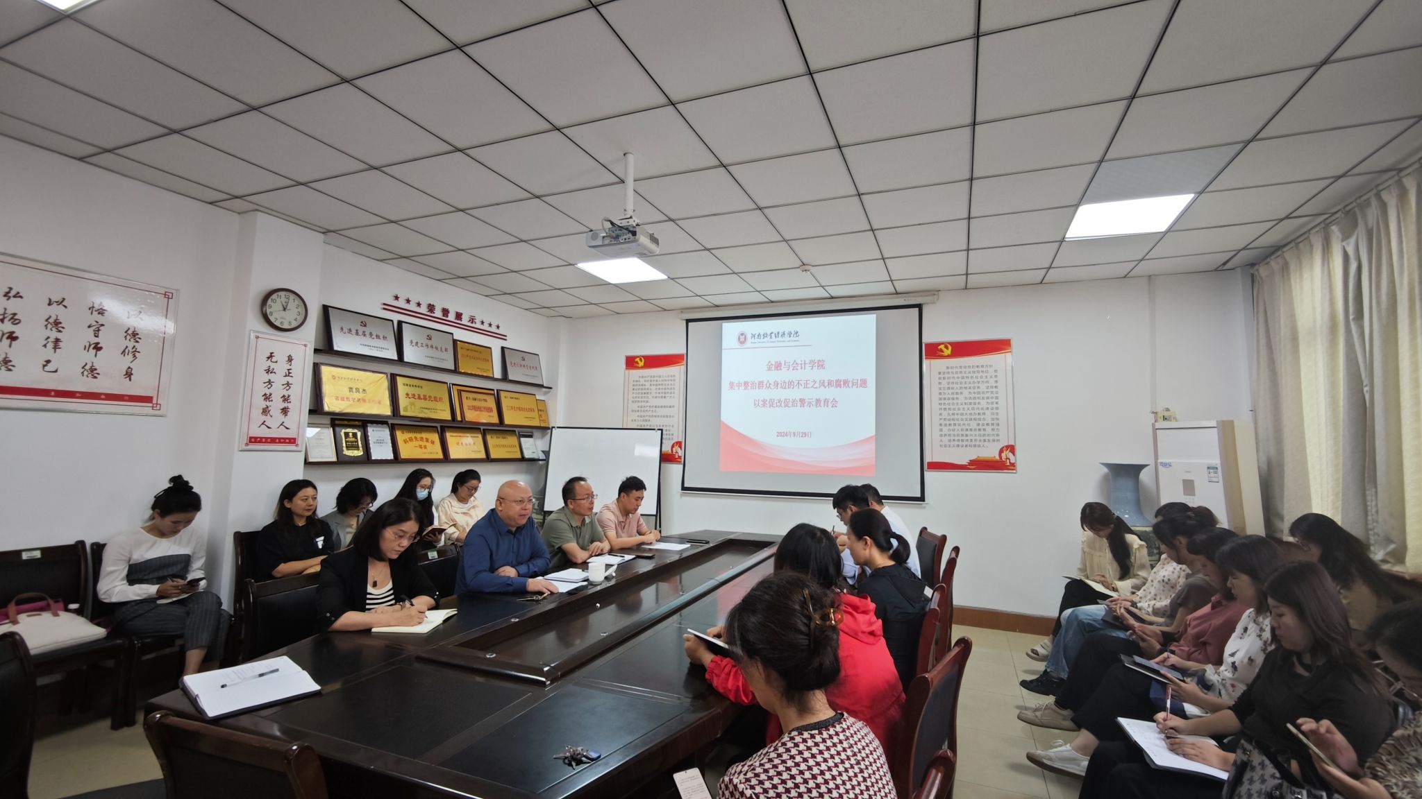 9月29日上午,pa电子官方网站在英才校区教学楼514会议室召开集中整治群众身边的不正之风和腐败问题以案促改促治警示教育会,学院全体行政工作人员、辅导员、各教研室主任及各党支部书记参加会议,会议由学院党委书记陈复昌主持。
