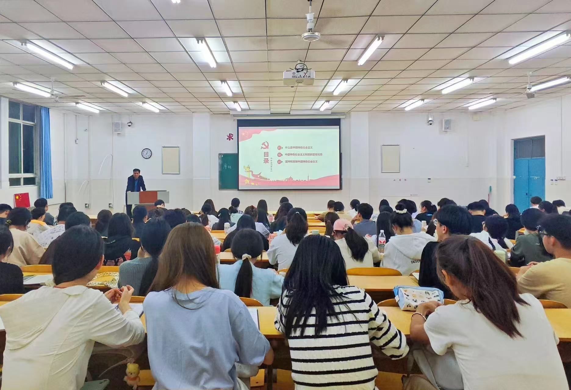 10月15日晚7点,pa电子官方网站在E209教室举行2024年第二期入党积极分子培训班第三讲——《坚持和发展中国特色社会主义》,本次党课由学生第一党支部书记顾自卫主讲。