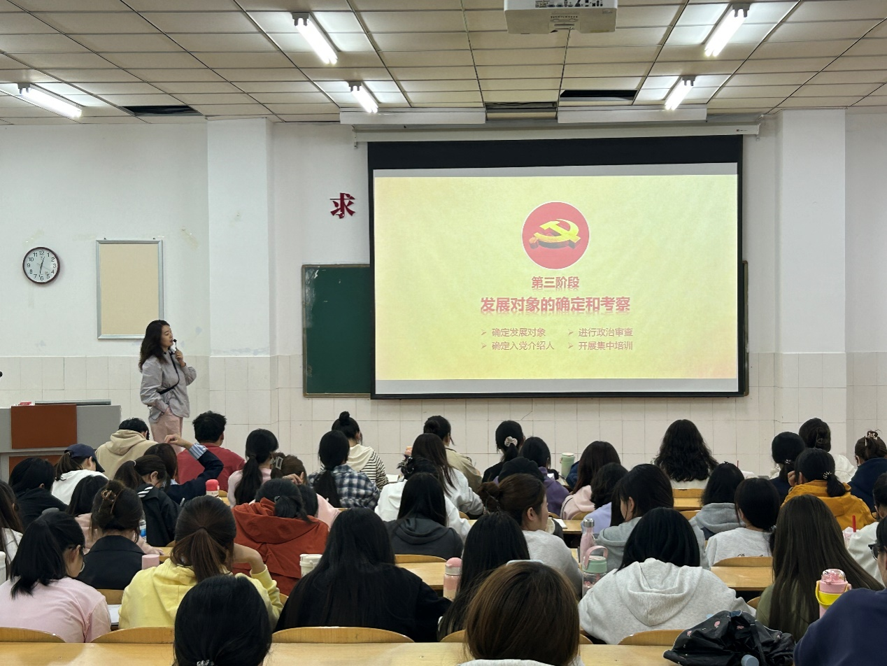 10月18日中午,pa电子官方网站在E209教室举行2024年第二期入党积极分子培训班第七讲——《大学生入党须知及注意事项》,本次党课由学生第五党支部书记张珂瑜主讲。