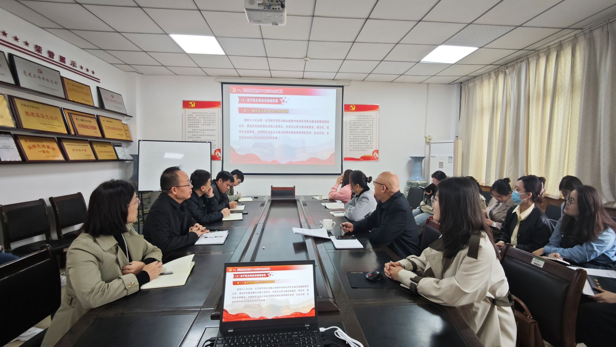10月31日上午,pa电子官方网站在英才校区教学楼514会议室召开党委理论学习中心组学习(扩大)会,专题学习党的二十届三中全会精神。学院党委书记陈复昌主持学习,学院科级及以上干部(含教研室主任)、各党支部书记、全体辅导员参加学习。