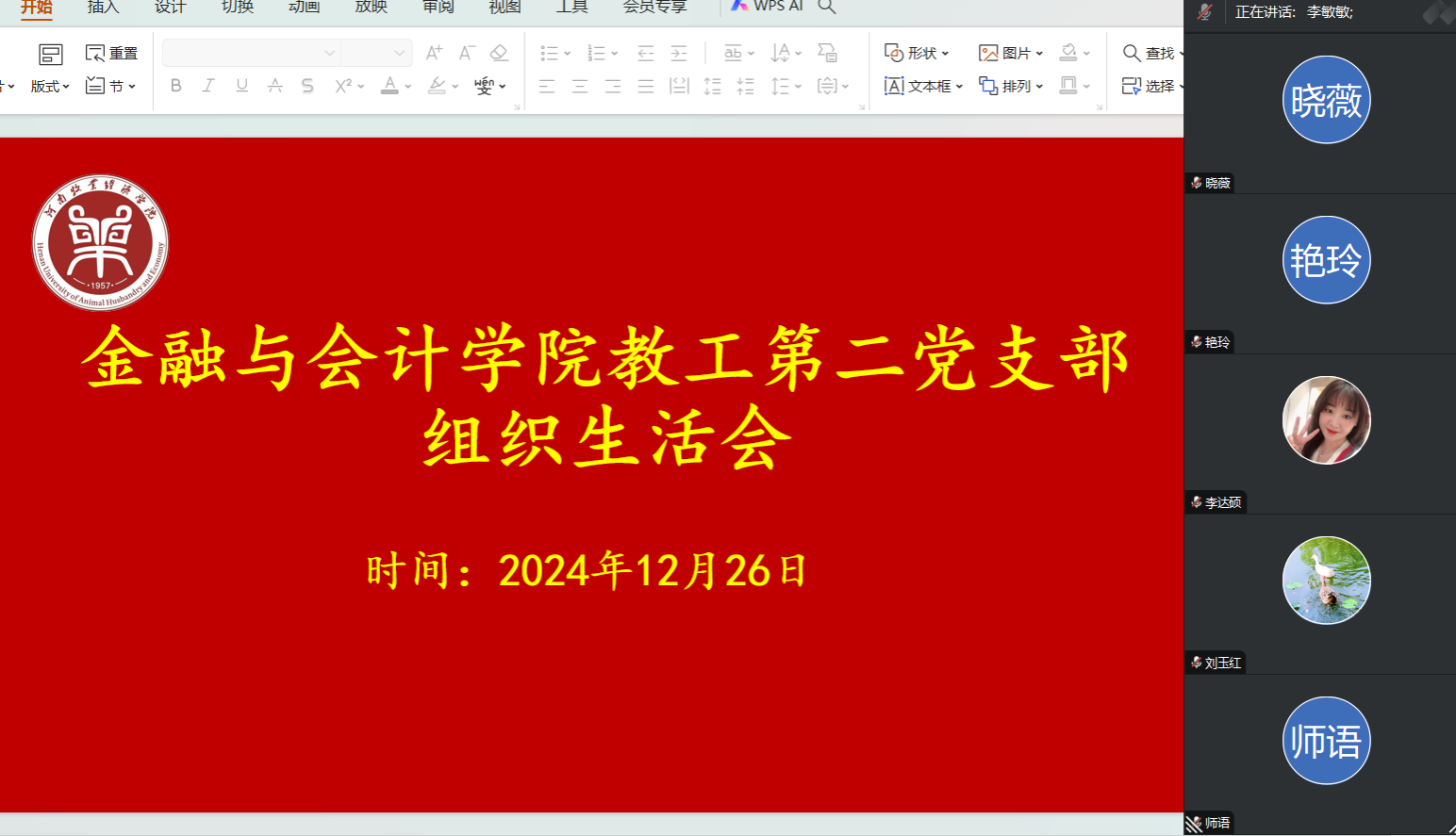 2024年12月26日,pa电子官方网站教工第二党支部根据学校和学院党委要求,聚焦主题,严格按照“四个带头”“三个摆进去”要求,召开组织生活会,本次会议由教工第二支部书记宋晓薇主持,全体党员参加本次会议。