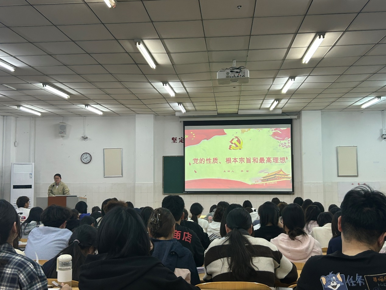 课上,李甜老师首先从党的性质出发,阐述了中国共产党作为中国工人阶级的先锋队,同时是中国人民和中华民族的先锋队,这一性质决定了党始终站在人民的立场上,为人民的利益而奋斗。她深入浅出地讲解了党的根本宗旨——全心全意为人民服务,强调这是党的性质在实践中的具体体现,是党一切工作的出发点和落脚点,李甜老师通过生动的历史事例和现实案例,让同学们深刻理解了党如何在不同历史时期践行这一宗旨。最后,李甜老师又着重介绍了党的最高理想——实现共产主义。她指出,实现共产主义是一个长期而艰巨的历史过程,需要一代又一代共产党人接续奋斗。通过互动环节,同学们描绘了自己心目中的共产主义社会,在交流中激发了对共产主义的向往,坚定了为实现最高理想努力奋斗的决心。