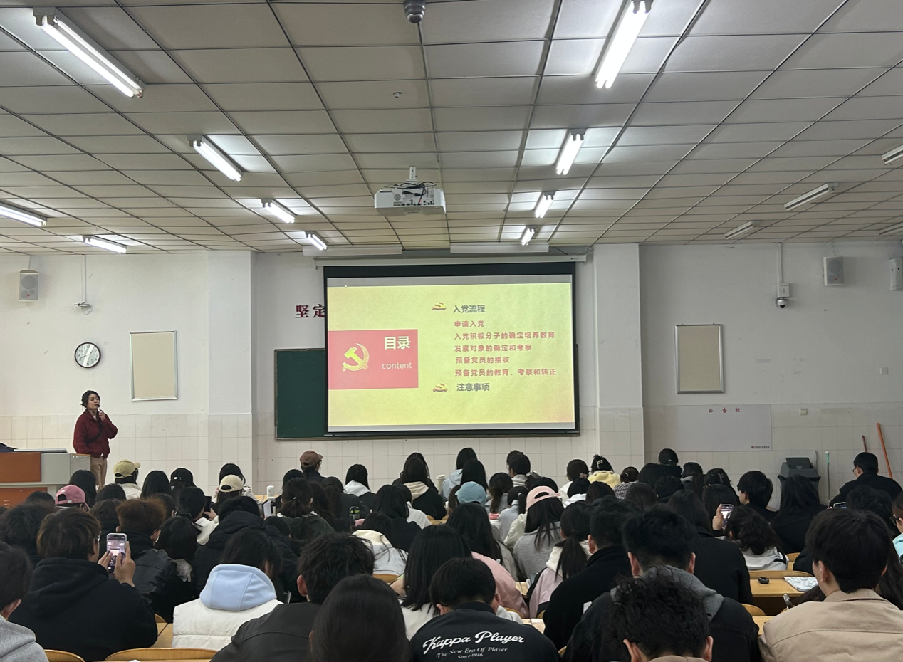 张珂瑜老师主要从入党程序和注意事项两方面进行讲述。首先,张老师详细讲述了申请入党的条件、入党积极分子的确定和培养、发展对象的确定和考察、预备党员的接收、预备党员的教育考察和转正五大方面的内容,使同学们对入党的流程有了进一步的了解。接着,张老师讲述了入党申请书、入党志愿书、思想汇报等材料的写作注意事项,并提到在入党过程中,入党申请人应始终保持真诚、坦率的态度,如实向党组织汇报自己的思想、学习和工作情况。培训最后,张老师希望大家能够将入党程序了熟于心,在未来的学习生活中以身作则遵守党规党纪,增强对中国共产党的热爱,坚定不移跟党走,用实际行动践行信仰,为党的事业贡献自己的青春力量。