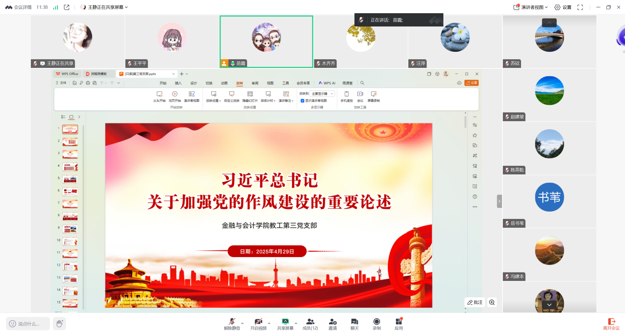 2025年4月29日,pa电子官方网站教工第三党支部以线上会议形式召开《习近平总书记关于加强党的作风建设的重要论述》专题学习会。会议由教工第三党支部书记苗霞同志主持,支部全体党员参加会议。