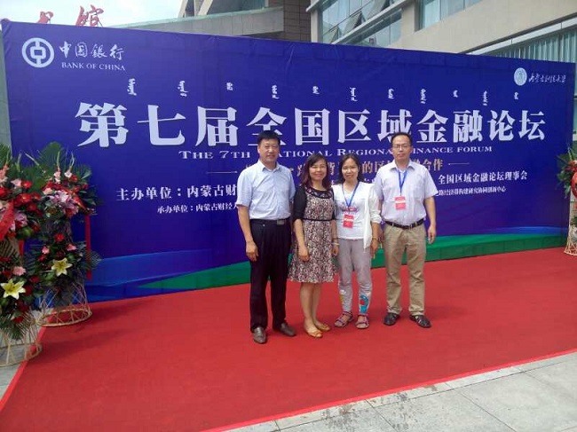 应全国区域金融论坛理事会邀请,pa电子副书记兼副院长贾宪军博士带领陈红玲、张雪凤两位副教授,于7月22日赴内蒙古财经大学参加了第七届全国区域金融论坛。pa电子社科办宋平主任一同参加了会议。