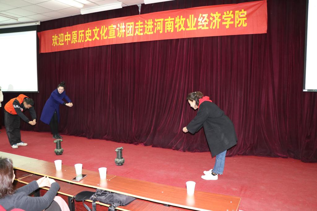 2月27日下午,河南博物院中原文化宣讲团在河南博物院社会教育服务部主任、文博副研究员林晓平带领下走进河南牧业经济学院金融学院课堂,结合pa电子典当专业课程安排,给学生做了一次精彩的宣讲。本次宣讲现场气氛十分热烈,宣讲员带来了从春秋战国到明清时期的名贵展品和游戏器材,为同学们讲解文物的由来、历史价值和古代文明礼仪知识。