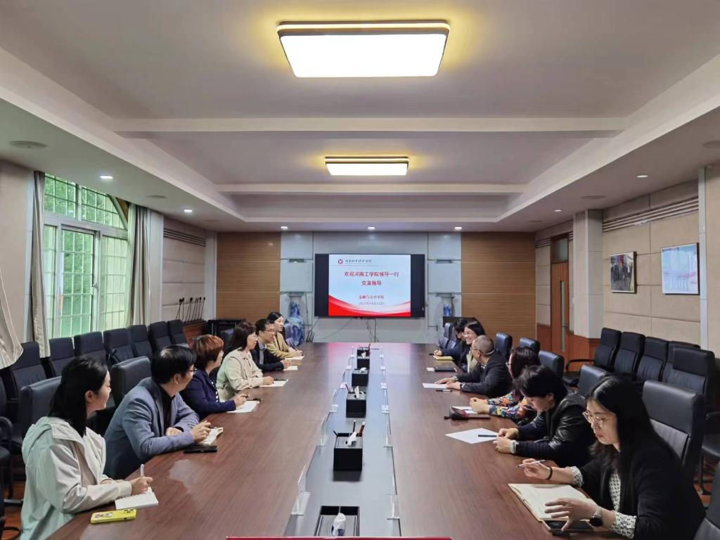 2023年4 月13日,河南工学院经济学院院长魏芳、副院长王世胜,管理学院院长田丽、副院长刘勇强等一行6人来pa电子考察交流。pa电子官方网站院长黄良杰,副院长邵翠丽、王培玲、崔海红及金融学和财务管理教研室主任参加会议。