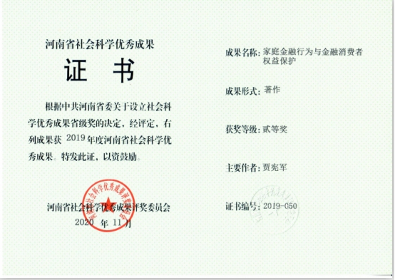 近日,2019年度河南省社会科学优秀成果奖评审结果正式公布,pa电子副院长贾宪军博士喜获二等奖。
