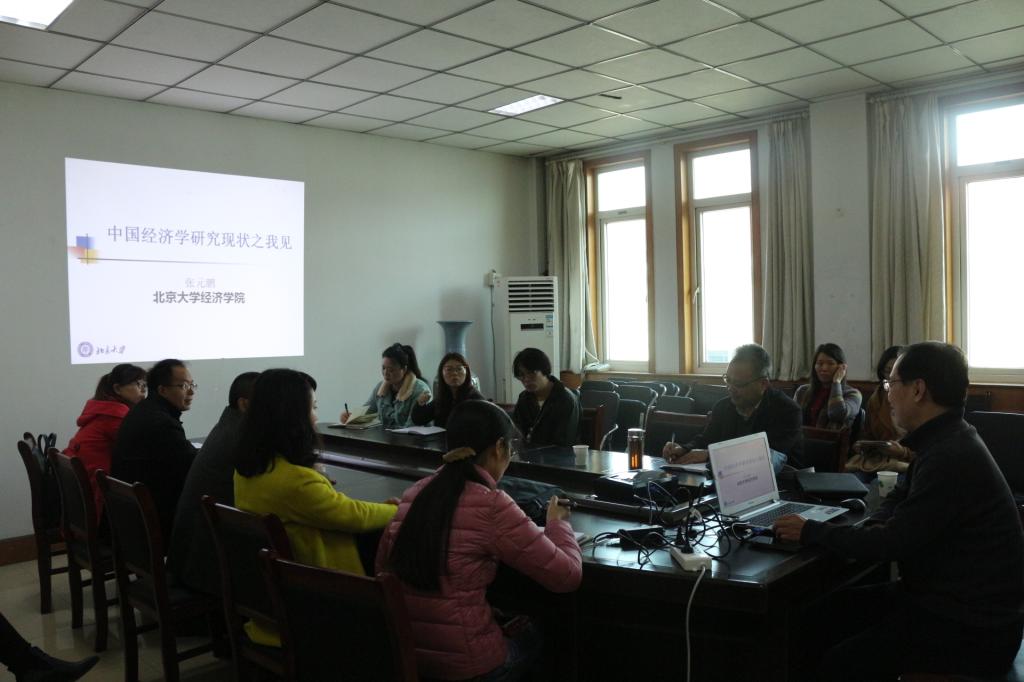 为了进一步拓宽pa电子教师的学术视野、提高教研水平,11月11日上午,金融学院邀请北京大学经济学院张元鹏教授作了题为《中国经济学研究现状之我见》的专题讲座。本院教师认真聆听了本次讲座,工程管理学院院长王筝也应邀参加了讲座。讲座由金融学院院长黄良杰主持。