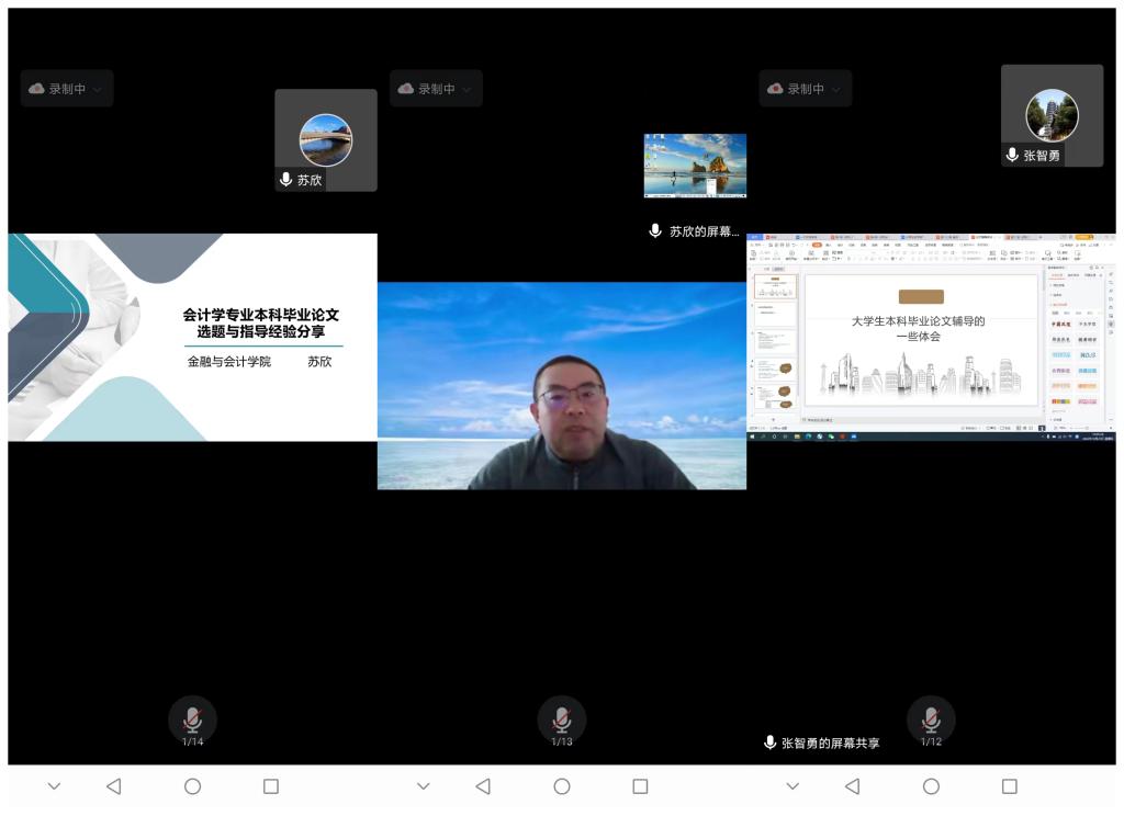 10月27日下午3点,pa电子官方网站开展优秀本科生毕业论文指导经验分享活动,活动以腾讯会议方式举行,邀请省级优秀论文指导教师张智勇副教授和苏欣博士分享指导经验。pa电子全体教师、外聘论文指导教师以及部分学生参加了本次活动,活动由副院长崔海红博士主持。