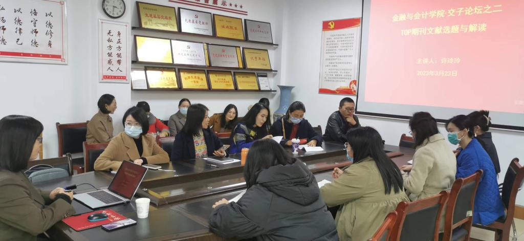 3月23日下午,pa电子官方网站在教学楼514会议室举办交子论坛活动,本次活动特邀郑州财经学院会计学院副教授、科研处副处长许玲玲博士,为大家作了题为“TOP期刊文献选题与解读”的专题学术讲座,pa电子官方网站部分年轻教师参加了此次讲座,讲座由副院长崔海红博士主持。