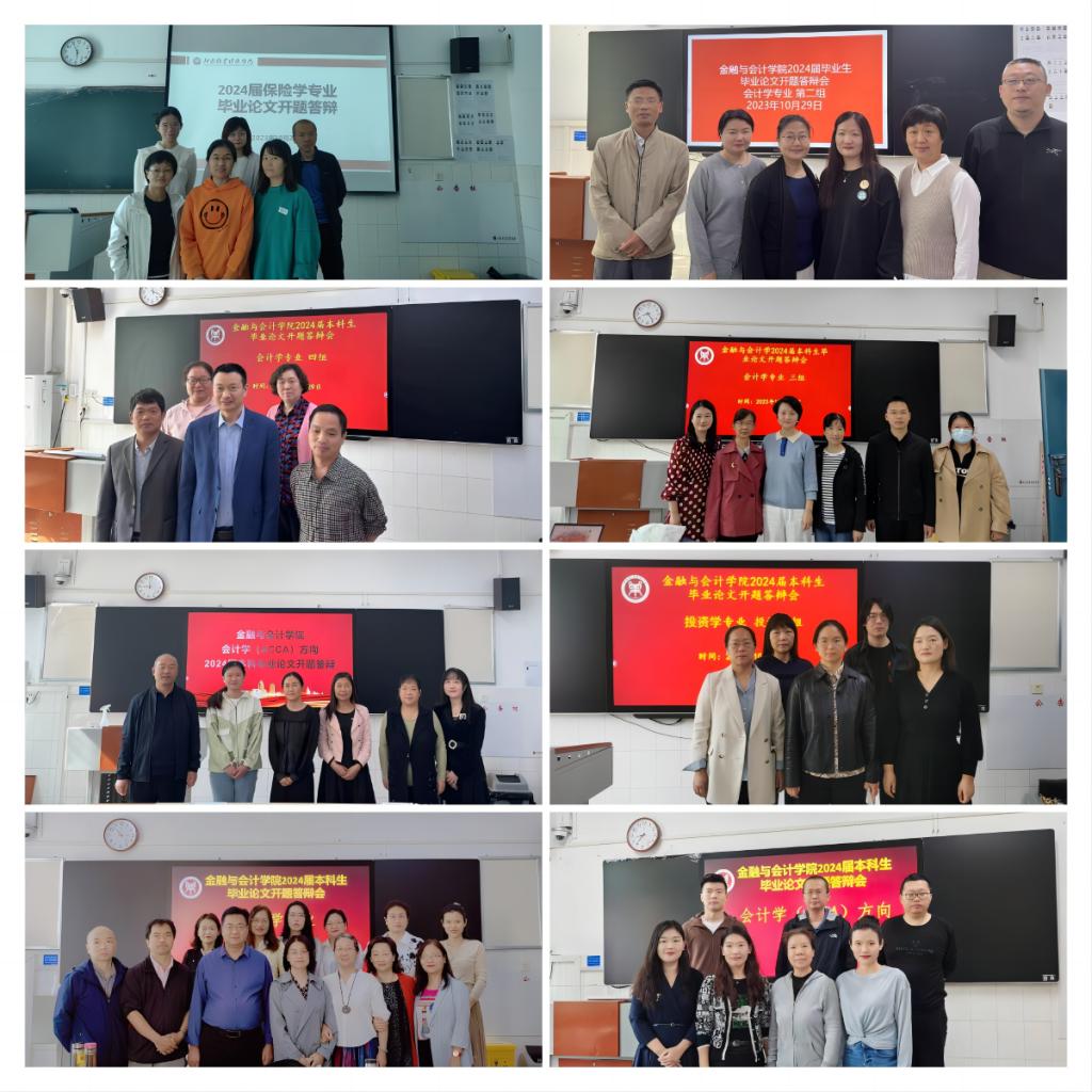 2023年10月26日至10月29日,pa电子官方网站在英才校区教学楼进行了会计学、财务管理、审计学、投资学、金融学、保险学等六个专业的本科毕业论文开题答辩,共19个答辩小组,1151名学生参加了本次开题答辩。