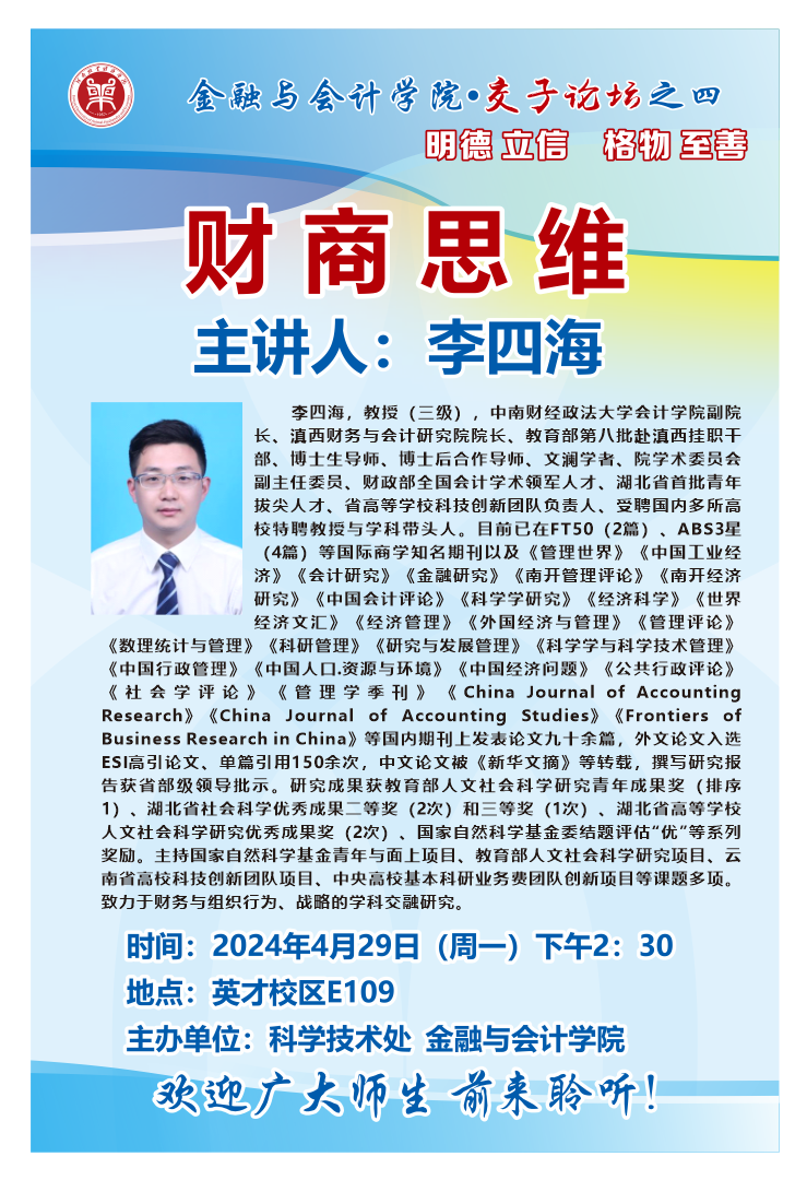 讲座海报:pa电子官方网站2024年交子论坛之四