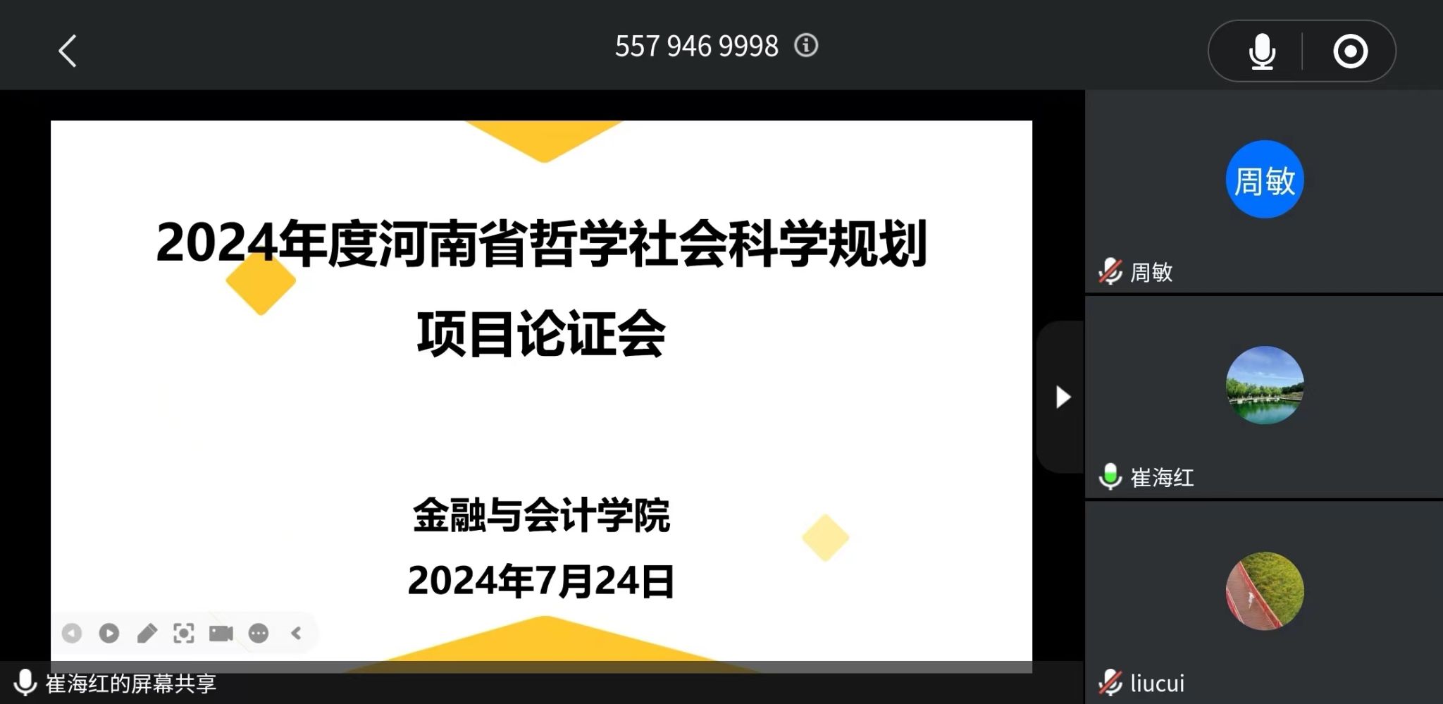 7月24日晚上7:30,pa电子官方网站在腾讯会议召开2024年度河南省哲学社会科学规划项目申报论证会,本次论证会特邀中南财经政法大学李四海教授和吕勇斌教授为评审专家,项目负责人及部分教师参加了论证会。会议由pa电子官方网站副院长崔海红博士主持。