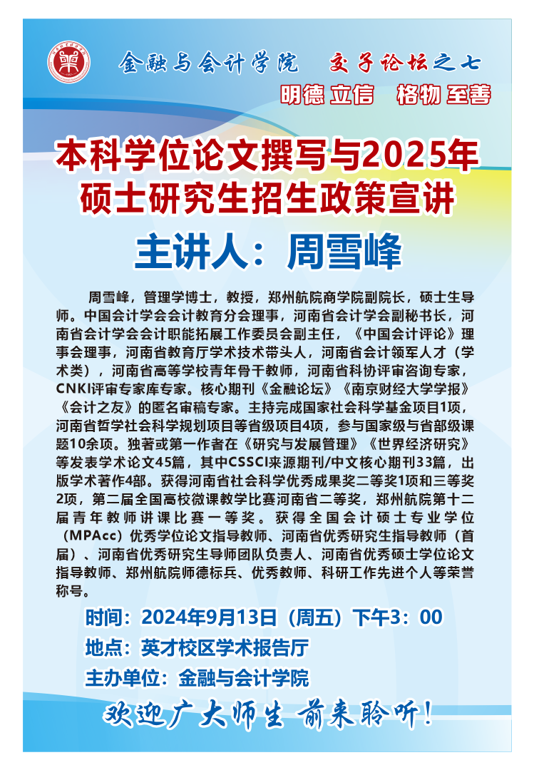 讲座海报:pa电子官方网站2024年交子论坛之七