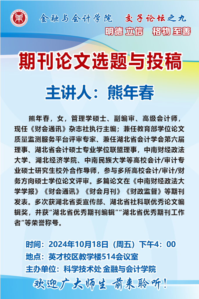 讲座海报:pa电子官方网站2024年交子论坛之九