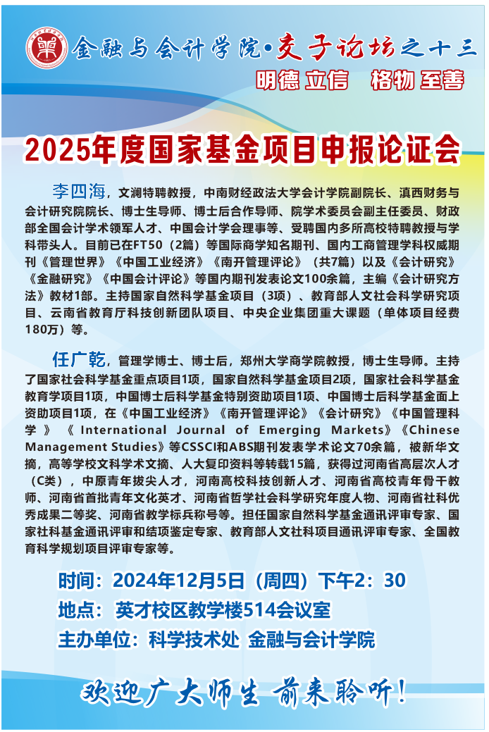 讲座海报:pa电子官方网站2024年交子论坛之十三