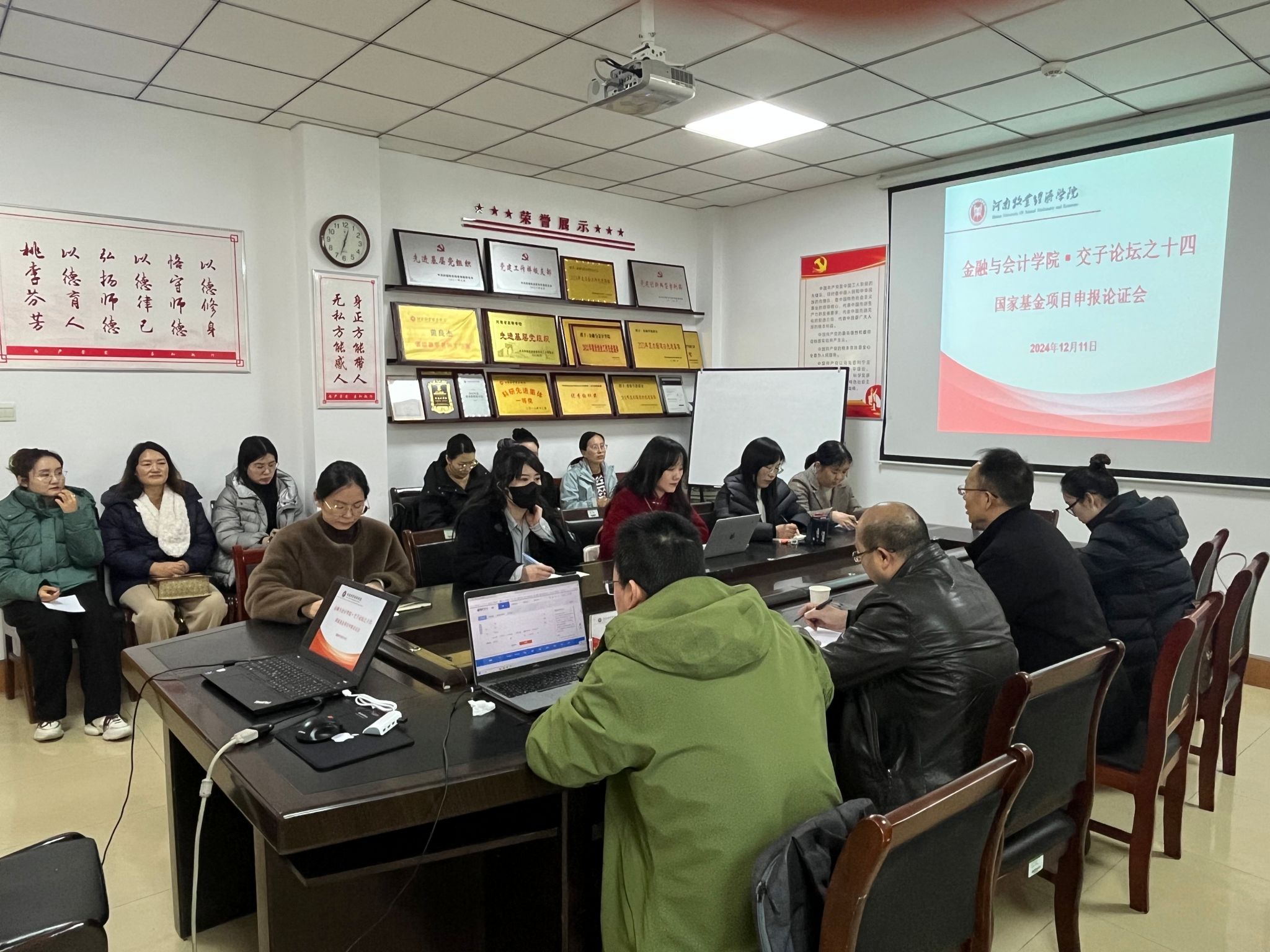 为做好2025年度国家基金项目申报工作,12月11日下午,pa电子官方网站在教学楼514会议室召开2025年度国家基金项目申报论证会。pa电子特邀中南财经政法大学吕勇斌教授和庄子罐教授进行现场指导,全体博士及部分教师参加了此次论证交流会。会议由pa电子官方网站院长贾宪军主持。