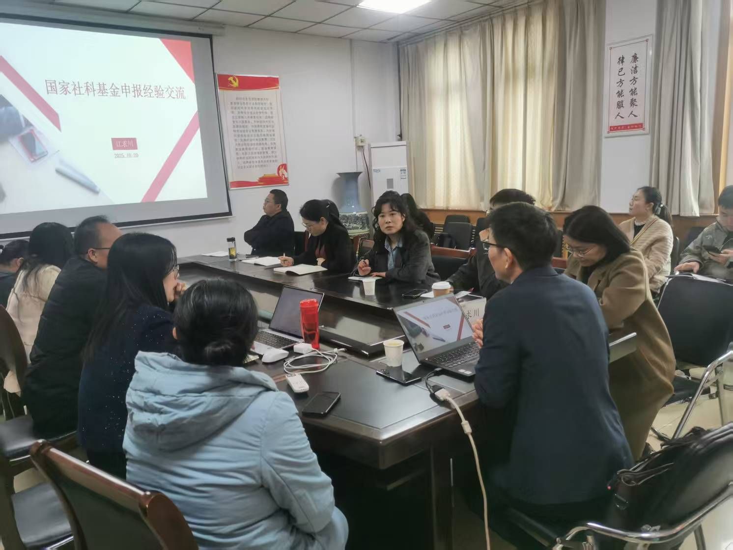 为强化有组织科研,充分做好2026年度国家基金项目申报工作,切实提升项目质量,促进学校科研工作高质量发展。pa电子于2025年10月22日下午,在教学楼514会议室举办“交子论坛”活动,本次活动邀请郑州大学商学院副院长江求川为大家作题为“国家社科基金申报经验交流”的专题讲座。讲座由pa电子官方网站院长贾宪军教授主持,副院长崔海红教授、部分博士及教师参加学习。
