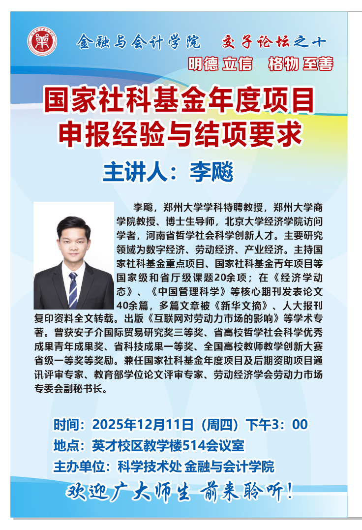 讲座海报:pa电子官方网站2025年交子论坛之十