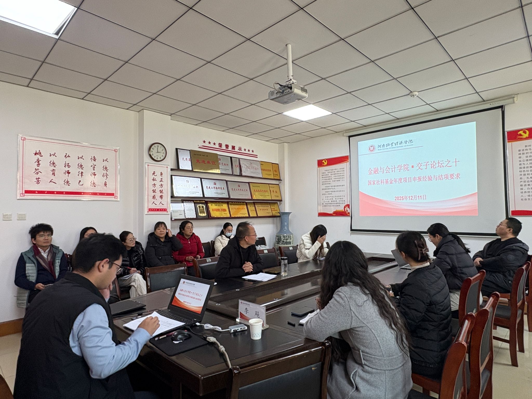 2025年12月11日下午,金融与会计学院在教学楼514会议室举办国家社科基金申报专题指导讲座,特邀郑州大学商学院李飚教授担任主讲,围绕“国家社科基金申报、执行与结题”开展系统讲解,并对学院教师的申报课题进行现场点评与指导。学院博士、部分教师及兄弟学院教师参加了此次讲座,讲座由pa电子官方网站院长贾宪军教授主持。