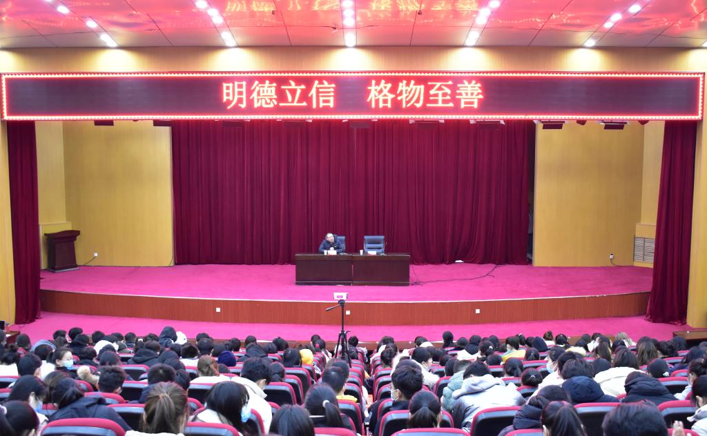 为了帮助学生了解大学生活和学习特点,引导学生认识自我和增强信心,树立大学目标,做好成长规划。pa电子官方网站于12月14日中午在学术报告厅召开以“明德立信,格物致善”为主题的专题讲座。本次讲座由pa电子官方网站院长黄良杰主讲,团委副书记邢珊珊主持,2020级全体学生参加。