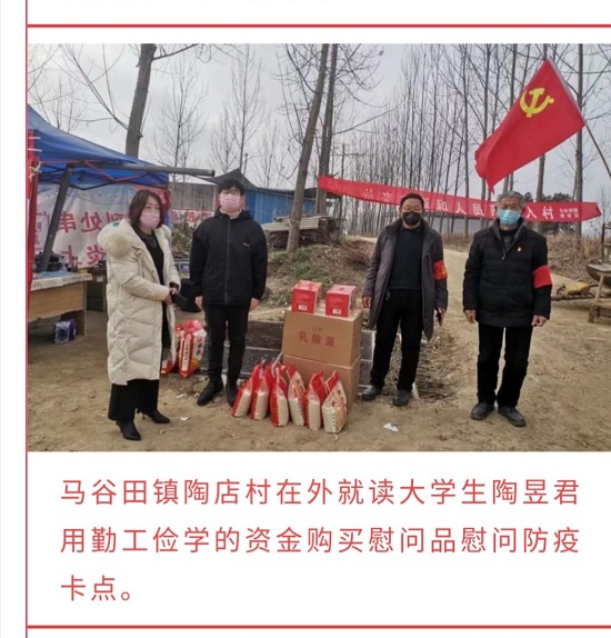 一场突如其来的新冠肺炎疫情,让全体国人猝手不及。身为会计学专业的陶昱君,在国家的号召下,坚持不出门、不聚集、量体温、保持乐观心态。在疫情期间,他认识了白衣天使、最美逆行者。他印象最深的是在我们的身边搭起了一个个防疫卡点,每天冒着危险为我们服务的志愿者们,他们是值得我们所有人敬佩的。看到他们无私奉献身影,他也想尽自己一份力,哪怕是一份绵薄之力。思来想去,他决定,把自己之前两年的勤工俭学金拿出来去购买大米、饮料等物资捐赠给防疫卡点。他只想尽自己最大的力量来与他们同行。他坚信全国人民团结一致,终将会战无不胜。