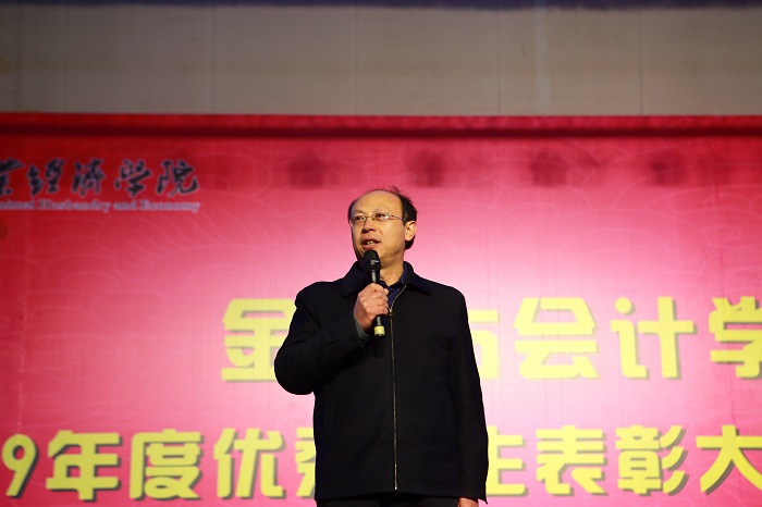 颁奖典礼上,pa电子官方网站全体领导分别为省级三好学生、国家励志奖学金获得者等7项个人奖项及省级优秀班集体等4个集体奖进行颁奖。颁奖典礼结束后,党委书记陈复昌致辞,陈书记首先对获奖的学生和集体表示祝贺,并对一年来的学生工作给予充分肯定。他希望获奖的同学要再接再厉,创造更好的成绩。陈书记还对2019级学生提出殷切要求,希望他们以优秀学生为榜样,将学习放在首位,并通过参加第二课堂活动和社会实践活动,从而不断的丰富自己、历练自己、成就自己,取得属于自己的那一份表彰和荣誉。